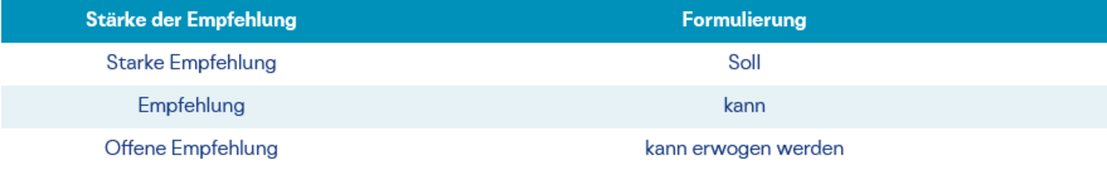 In Leitlinien werden Empfehlungen ausgesprochen. Diese bedienen sich der soll und kann Formulierung: